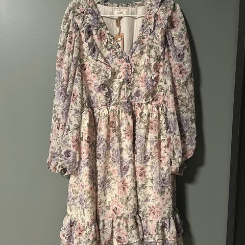 Helt ny kjole, med dyp utrigning. Sitter veldig fint på. Nypris 599.