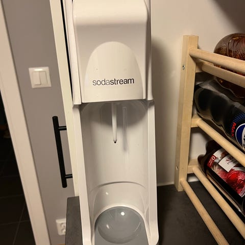 Sodastream uten patron selges, flaske medfølger. Den har stått på hytta og jeg har ikke selv brukt den men den skal funke fint.