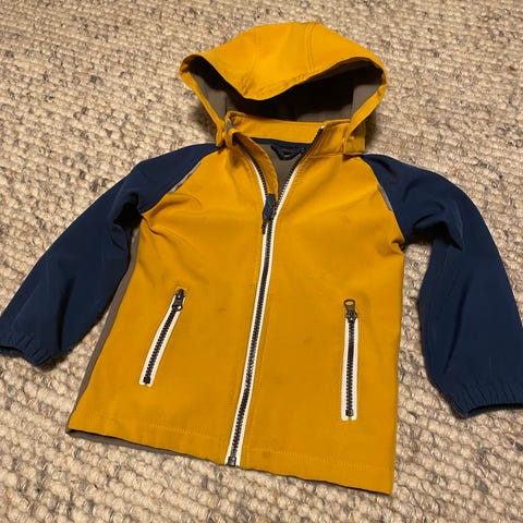 Pent brukt softshell jakke med fôring i fleece. Avtakbar hette.