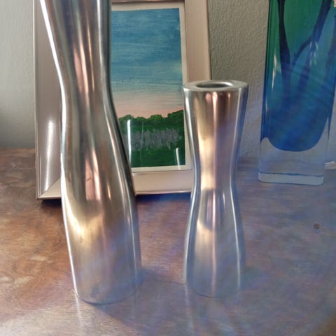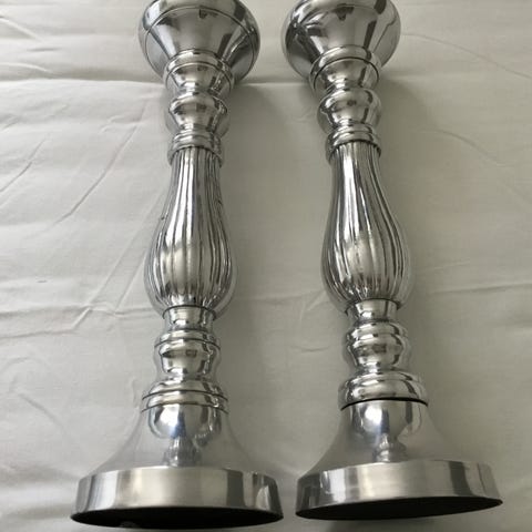 Meget dekorative og tunge lysestaker fra serien Vittori fra Bohus. Gir en et eksklusivt intrykk til ethvert interiør! I god stand, ingen hakk eller skader. Rustfritt stål, passer til telys. Selges samlet
