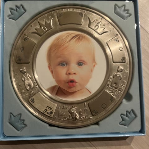Helt nytt Eik Hjertevenn baby bildealbum med hjerteformet utskjæring i sølvfarget materiale. Passer til små bilder, designet for å holde minner av babyer. Leveres i original emballasje. Flott dåpsgave, fødselsgave, julegave, bursdagsgave