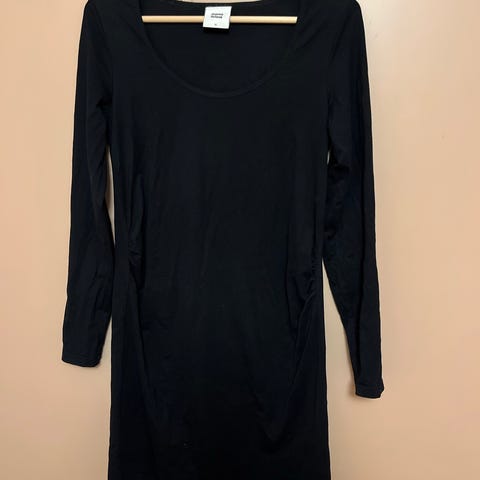 Pent brukt blyantskjørt med god plass til magen! Str. 34 men kan nok passe 36 også. Full lengde er 59 cm. Har målt plagget liggende flatt. Skjørtet er tettsittende; men stretchy i materialet. Elastisk midje. Ikke stramt over magen. Sort farge. Ingen anmerkninger eller slitasje. Veldig fint skjørt både til pent og jobb 😊