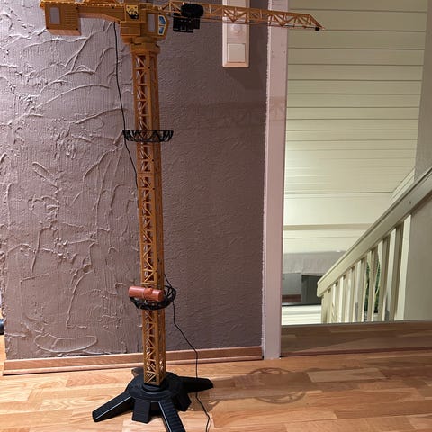 Denne kraftige kranen strekker seg hele 110 cm i høyden, og kan rotere 360 grader for realistisk lek og ekte byggeplassfølelse. Den leveres med en ledningskontroll som gjør det enkelt for barnet å styre både rotasjon og løfting av lasten – akkurat som på en ekte byggeplass!