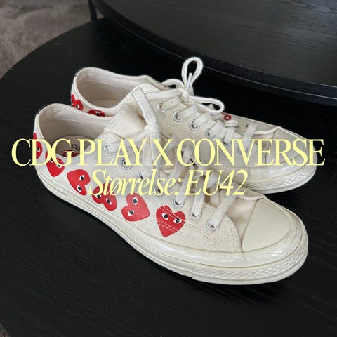 COMME DES GARCONS PLAY X CONVERSE CDG i størrelse 39. Aldri brukt. Eske følger med om du ønsker.