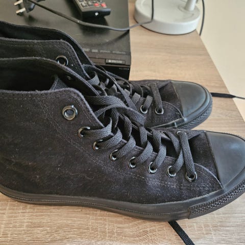 Klassiske Converse-joggesko i svart skinn.🖤 Kjøpte dem her på Finn for noen år siden og har brukt dem en håndfull ganger. Kjempekule sko, og i god kvalitet, men litt feil størrelse til meg.