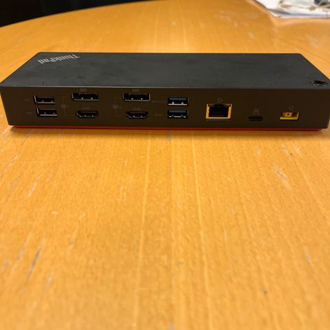 Dette er en Lenovo ThinkPad OneLink+ Dockingstasjon (modell 40A4) som utvider tilkoblingsmulighetene til din kompatible ThinkPad-laptop med en enkel OneLink+-kabel. Den gir deg tilgang til flere skjermer, USB-enheter, kablet nettverk og lading.