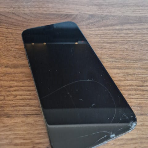 I tillegg er det noen små hakk i kanten på rammen. Skjermen fungerer fortsatt som den skal, så den trenger ikke å byttes. Sprekkene er vanskelig å se i daglig bruk.