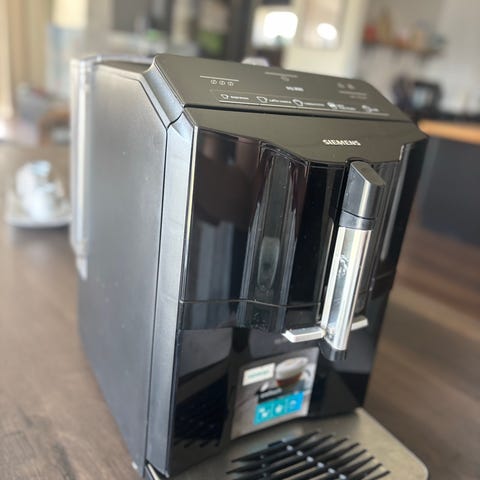 Søkeord: nydelig kaffe, hjemmekontor, luksus i hverdagen, Siemens kaffemaskin.