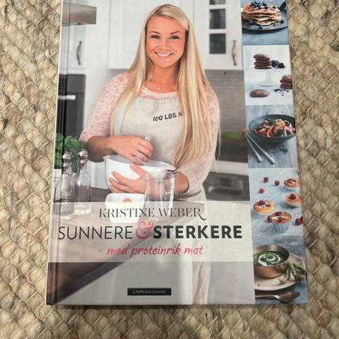 Kristin Berget Her Sterkere kokebok med fokus på proteinrik mat. Inneholder oppskrifter og ernæringsinformasjon for målrettet kosthold.