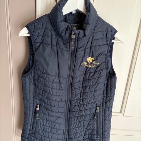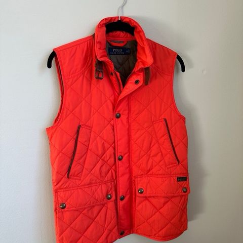 Polo Ralph Lauren vest i rød farge, størrelse S for damer. Laget av 100 % polyester. Vesten har en polstret design og er egnet som ytterplagg for kjøligere vær.