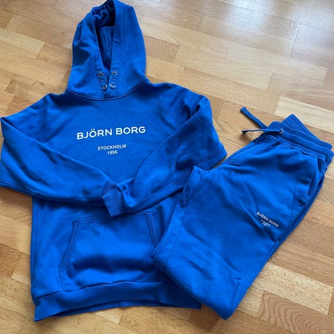 Veldig tøft sett fra Bjørn Borg i str 110/116 🖤 Teksten på plaggene har holdt seg helt fint i vask. Men settet har fått litt nupper. Mye bruk igjen av et veldig kult sett 😊