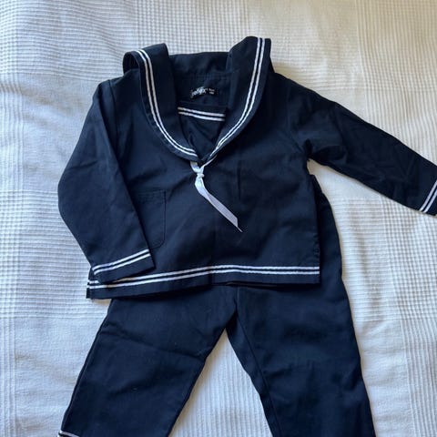 Helt ny og fin matrosdrakt i fullt outfit selges da gutten skulle bruke det i bryllup men fikk kalde føtter. Drakta er da kun prøvd på og tatt av igjen. Ingen feil eller mangler. Røyke og dyrefritt hjem.