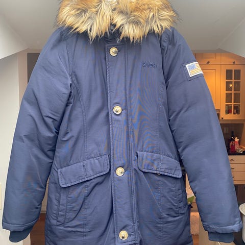 Pent brukt varm og god, Svea jakke. Det er skal ikke være noe merker, slitasje og hull, men pga kraftig glidelås og at den kan også åpnes nedifra/luftig. Så er det en teknikk å lukke. Samle gliderlås på linje før man drar opp.