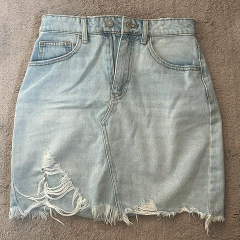 Olaskjørt fra Monki i str. 34, litt for liten til meg forsto jeg etter jeg hadde kjøpt den. Lappen er tatt av, men ikke brukt.