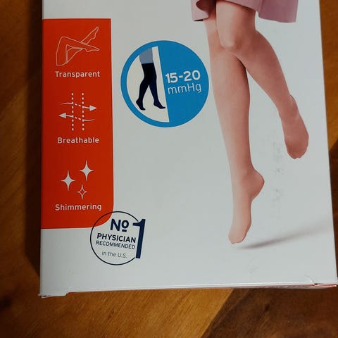 Helt ubrukt støttestrømper i størrelse XL og til under knehøyde i hvit og grå.