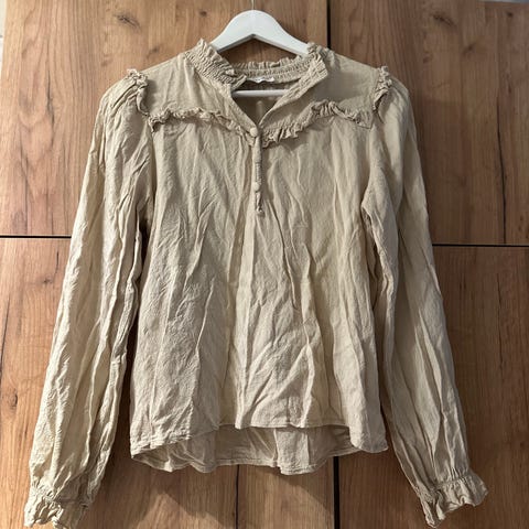 Floyd TE-Orient bluse i størrelse XS for kvinner. Blusen er flerfarget med blomsterprint, har strikk i midjen og sitt meget fint på.