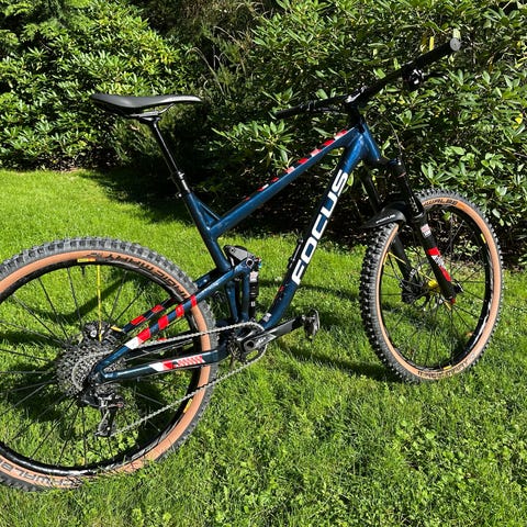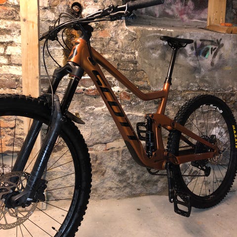 NB: Bildene er ikke mine, per nå står sykkelen med andre deler, men selges slik den er på bildet. Derfor er det nye hjul, ny dempergaffel, nye bremser og nytt styre/stem. Har brukt sykkelen med litt andre komponenter (slik som på de to siste bildene), så noen av delene er som sagt ubrukt.