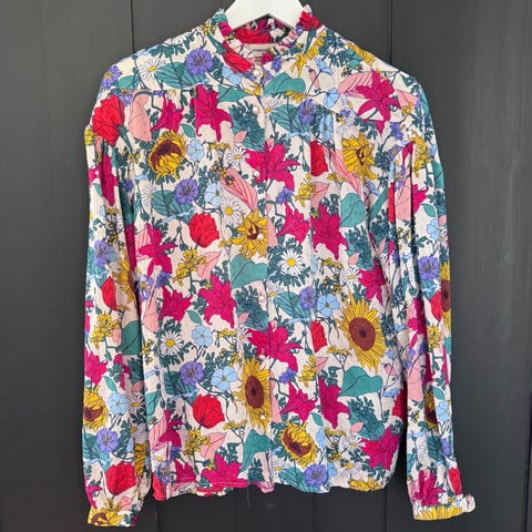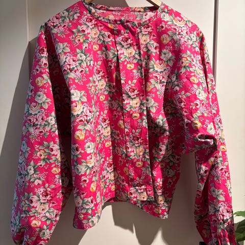 đž Vintage bluse â smĂ„blomstret i lilla, grĂžnn, blĂ„ og rosa (str. S)