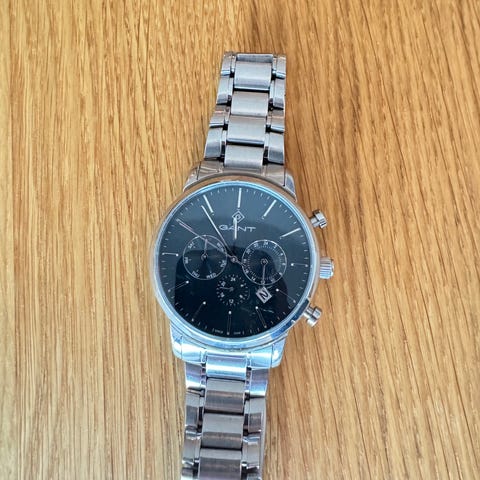 Hvit urskive med 3 små urskiver (dato, ukedag og 24-t visning).
