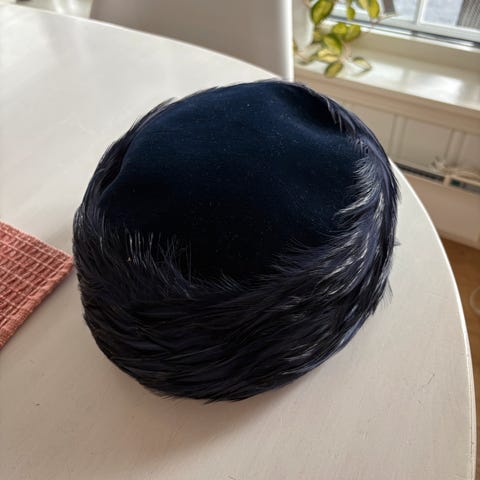 fløyel, Fascinatorhatt for kvinner, med vakre fjær, mørkeblå