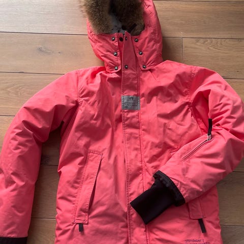 Vinterjakke, skijakke, størrelse L, 40. Lite brukt. Ingen flekker. Ekte pels.