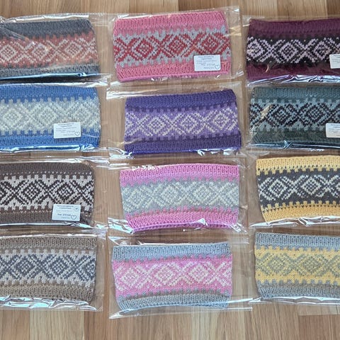 Selger 1 pannebånd og 2 buffer som er hjemme strikket 50 kr stk