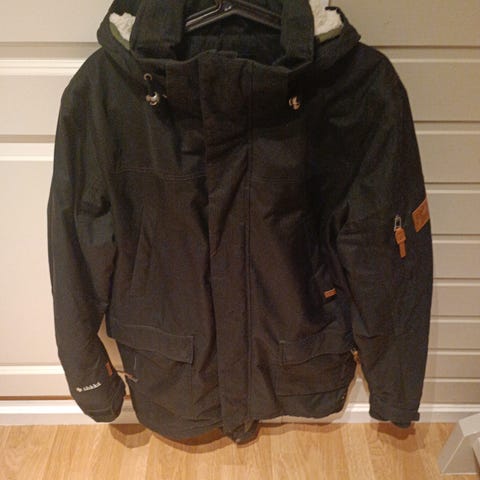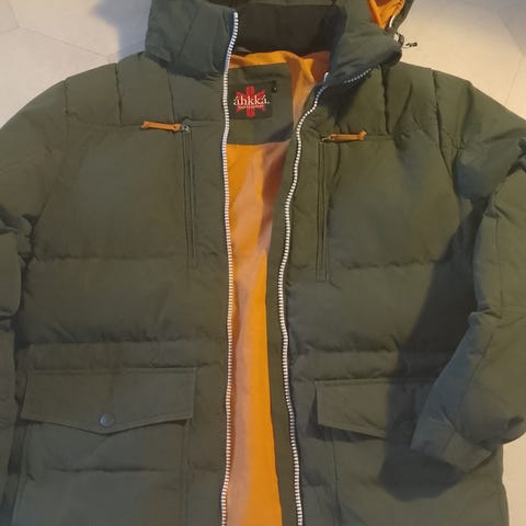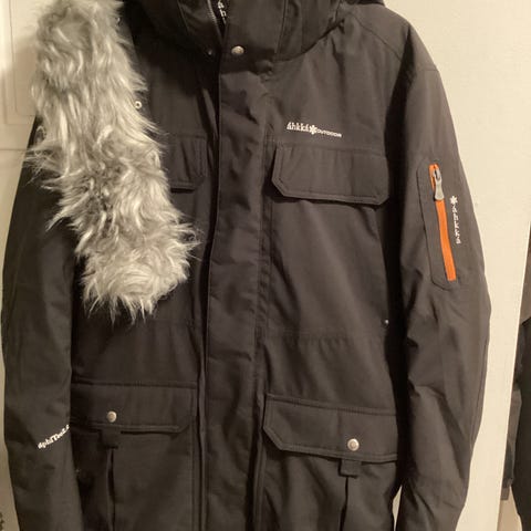 Åhkka Outdoor jakke ( finsk merke og veldig god kvalitet ) - i størrelse S for herre. Jakken er svart og har detaljer som glidelås og borrelås på ermene. Den har en innerforing med røde detaljer og en hette med pelskant. Jakken er egnet for utendørs bruk.- God jakke for sure høstdager og kalde vinterdager .- avtagbar pels ( se bilder) Sender gjerne med posten bring!