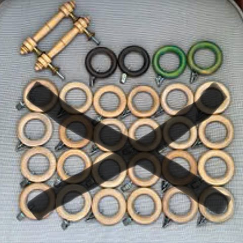 Beslag til tekstil arbeide. Eks.: klokkestreng, broderi, Macrame. M.m.