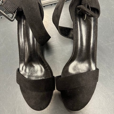 Even&Odd Hæler i størrelse 39 med svart farge. Skoene har en høy blokkhæl og en lukket tå med platform. Materialet ser ut til å være syntetisk, og skoene har en ankelstropp med spenne for justering.