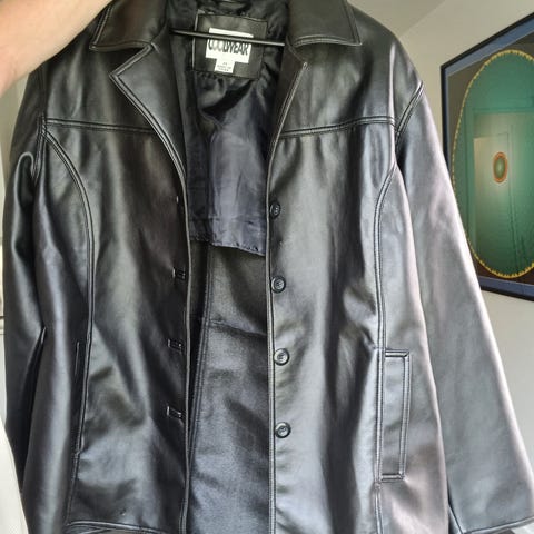 Med hette og knyting bak. Detaljer av "skinn" som gjør den litt røff. Sender med posten og bruker vipps.