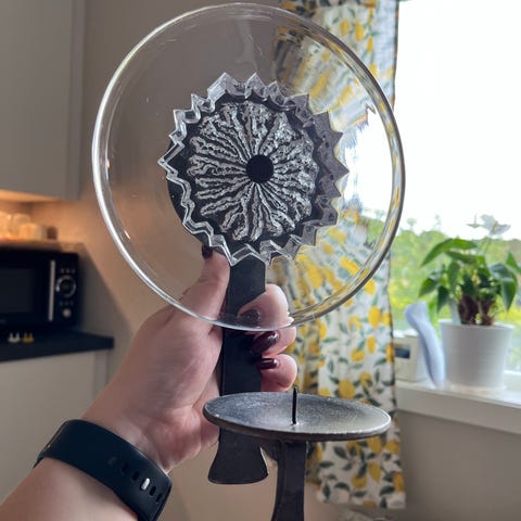 Høyde 9 cm, diameter bunn 7 cm, diameter topp ca 5 cm