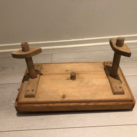 Syltepresse I tre. Brukt kun 1 gang. Måler 42x24 cm Max høyde 20 cm.
