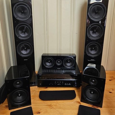Blir brukt for lite til at jeg ønsker å ha det stående lengere, så kanskje noen som hører på musikk litt oftere ser på det som interresant, dette er et anlegg som bringer god lydkvalitet både til musikk og filmkvelder, Og gode muligheter til å justere lyd etter som man ønsker å ha det.