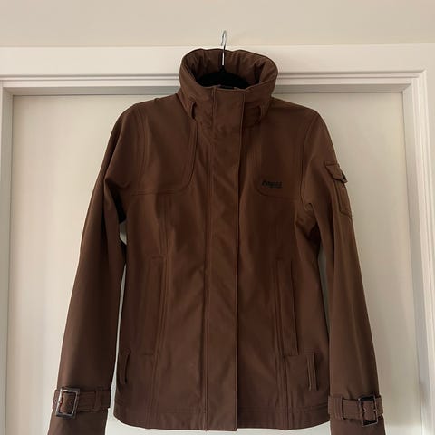 Bergans Oslo Lady knelang regnjakke i størrelse S, mørk brun (den ekte fargen på jakken vises på bilde 1 og 2).
