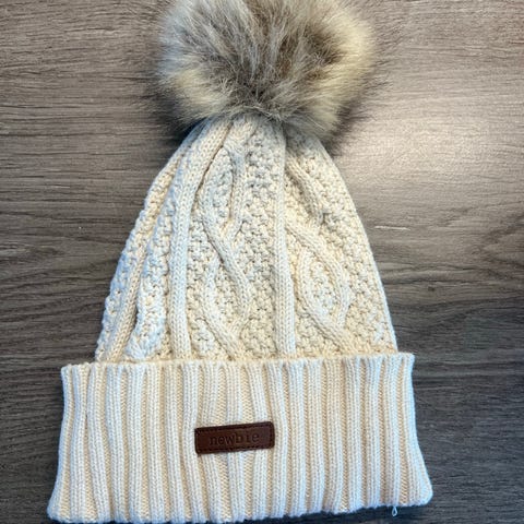 Newbie unisex lue i brun farge, størrelse 44, passende for barn i alderen 4-9 måneder. Laget av strikket materiale.