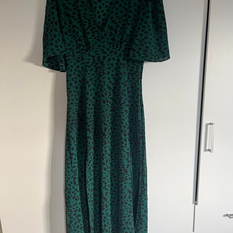 Pent brukt en gang. Asos hverdagskjole i størrelse 40. Kjolen er i lys beige med detaljer i heklet mønster rundt hals og nederst på kjolen. Materialet er behagelig, egnet for både selskaps- og hverdagsbruk.
