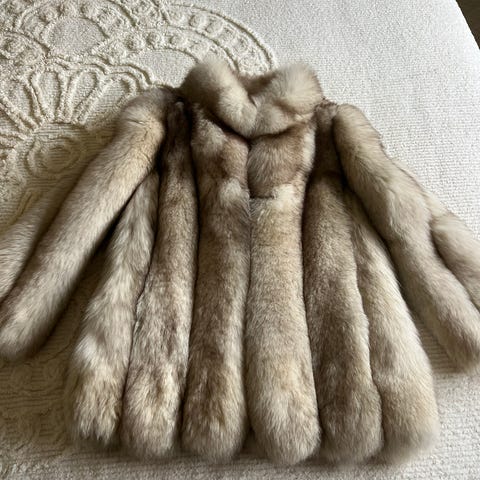 Lang vintage revpelsjakke – ekte rev, norsk håndverk (Jølstad Fredrikstad)