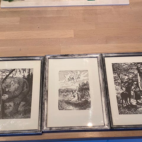 - Fem innrammede bilder 31 x 23 cm med to motiver i hvert bilde. Reproduksjoner kjøpt via sparebank.
