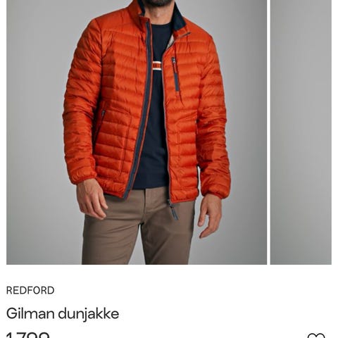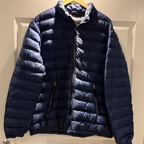 Pent og lite brukt Gilman dunjakke av Redford. Det er en lett dunjakke i mørk blå farge og bestående av 90% dun / 10% fjær. Størrelsen er XL.