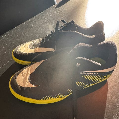 Selger et par Nike hypervenom fotballsko i størrelse 35 for 75 kroner. Godt brukt, men mye bruk igjen. Se bilde av knotter.