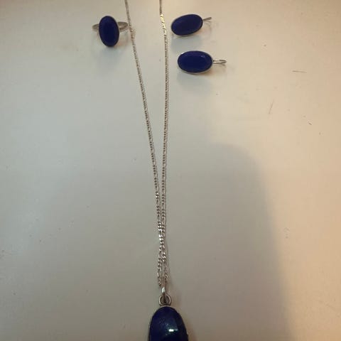 Stort anheng med sølv og rav.