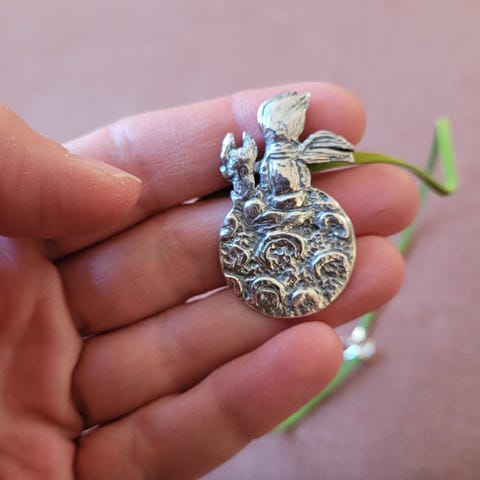 Anhenget er formet som en veps som sitter på et vepsebol.