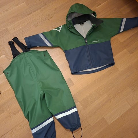Regntøy fra Didriksons, noen merker på knær og på rumpa. Ingen hull.