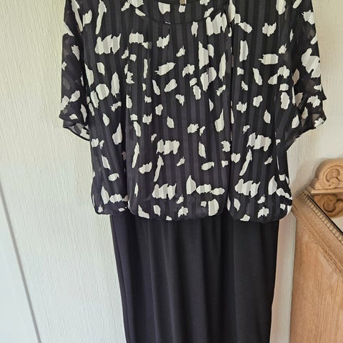 Helt ny og ubrukt svart kjole fra Lola May i str uk 16, som tilsvarer en norsk str 44. I glatt stoff med stilige detaljer i utringningen.