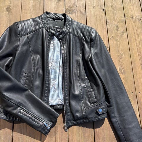 Helt ny jakke i imitert skinn, kjøpt på New Yorker.