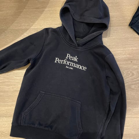 Peak Performance barnegenser i en frisk blå farge. Str. 130. Genseren har hette.