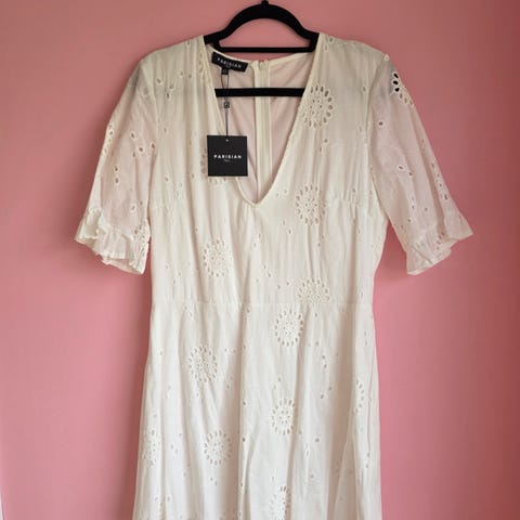 Helt ny og ubrukt svart kjole med hvite roser på. Merket heter Parisian, og kjolen er i tall. Passer like godt til hverdags som til fest. Str 44.