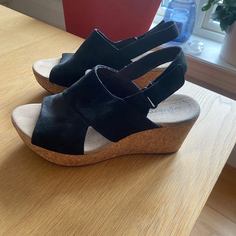 Selger disse fine Clarks kilehælsandalene i skinn. Str.39 (uk 5,5) Bare stått innpakket i en skoeske. Kun prøvd på! Eier kan dessverre ikke bruke sånne hæler!