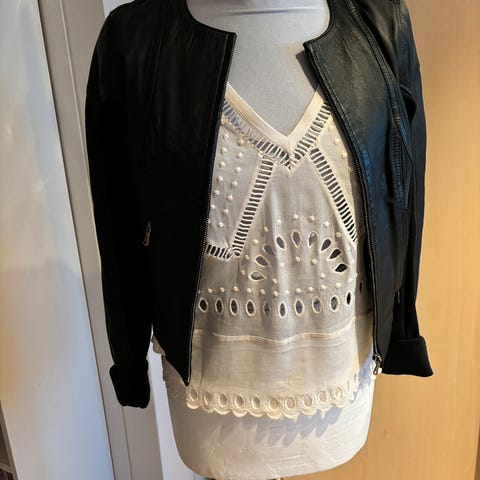 Nesten ikke brukt «skinnjakke», polyester står det på lappen inni.