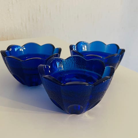 Selger en håndlaget telysestake/ lite fat i glass fra danske Greve Glaskunst